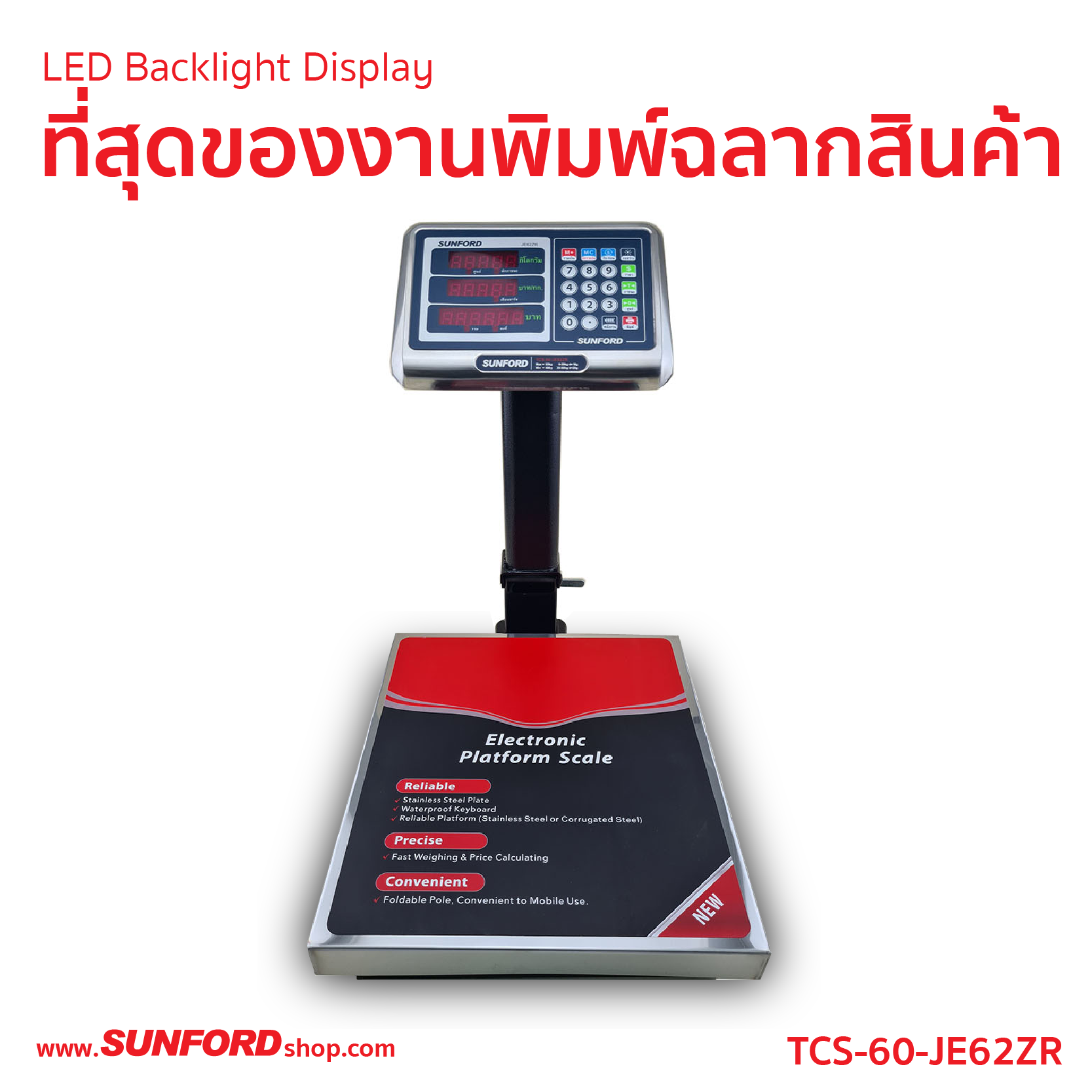 โครงสร้างเหล็กหนาเคลือบอบสีกันสนิม จานชั่งขนาดกว้างพิเศษ ทำจากสแตนเลสหนาไร้สนิม ถอดทำความสะอาดได้ตามต้องการ พร้อมฟังก์ชั่น นับจำนวนเป็นชิ้น