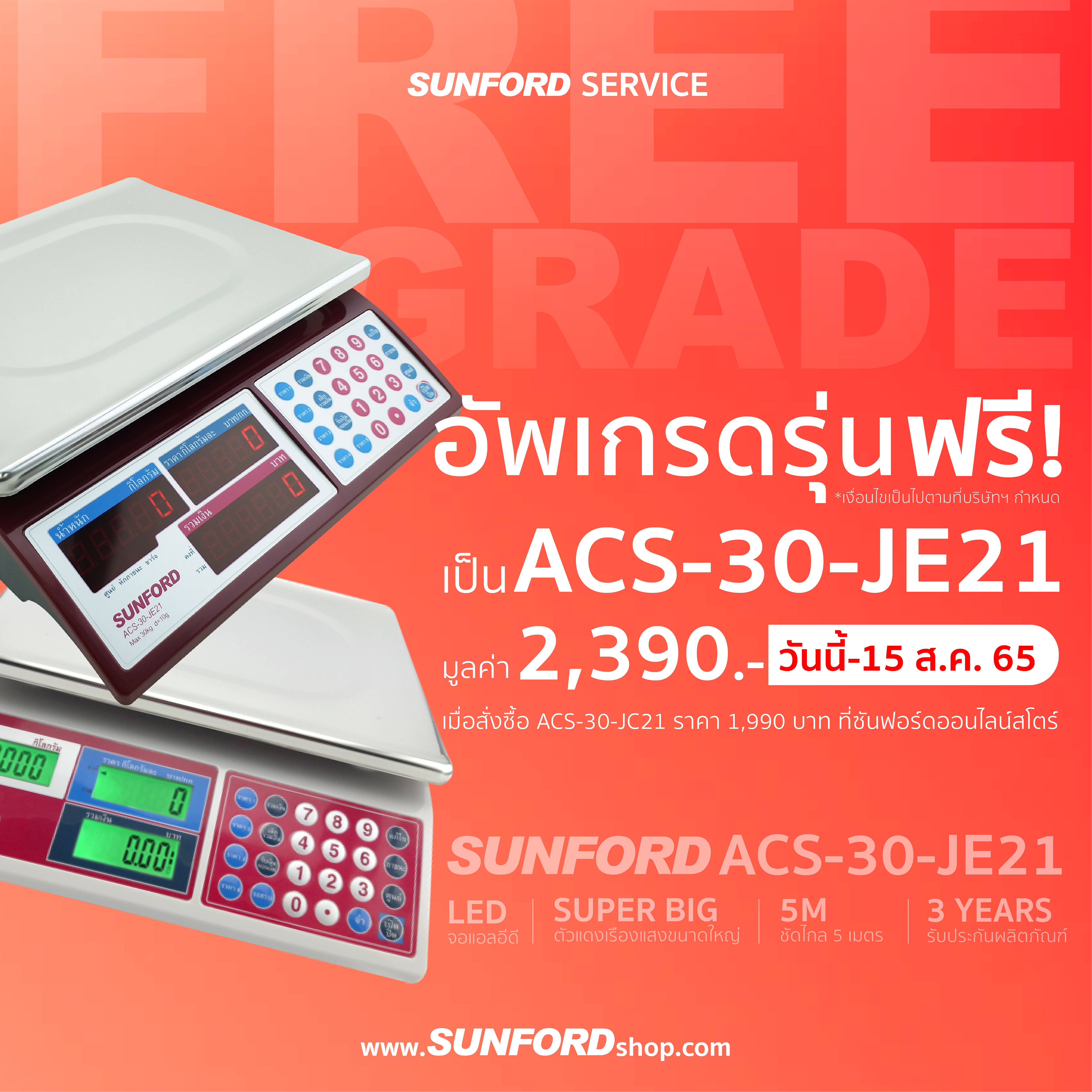 เมื่อสั่ง ACS-30-JC21 และเลือกฟรีอัพเกรดที่ซันฟอร์ดออนไลน์สโตร์