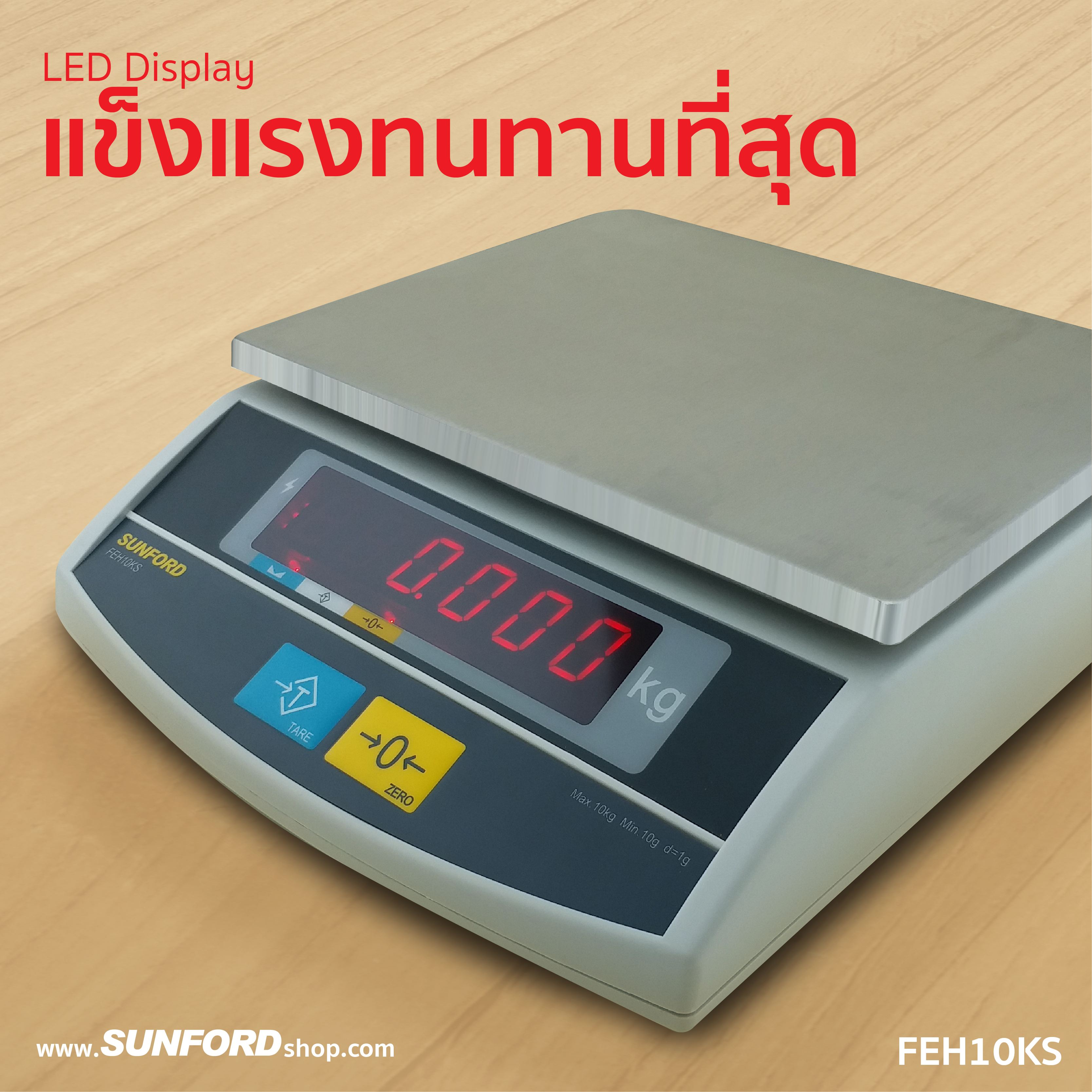 ทนต่อแรงกระแทก ปุ่มใหญ่ กดง่าย หน้าจอแสดงผลเห็นชัดเจน ตัดน้ำหนักเป็นศูนย์ (Zero) หักน้ำหนักภาชนะอัตโนมัติใช้ภาชนะอื่นแทนจานชั่งได้ตามต้องการ (Tare)