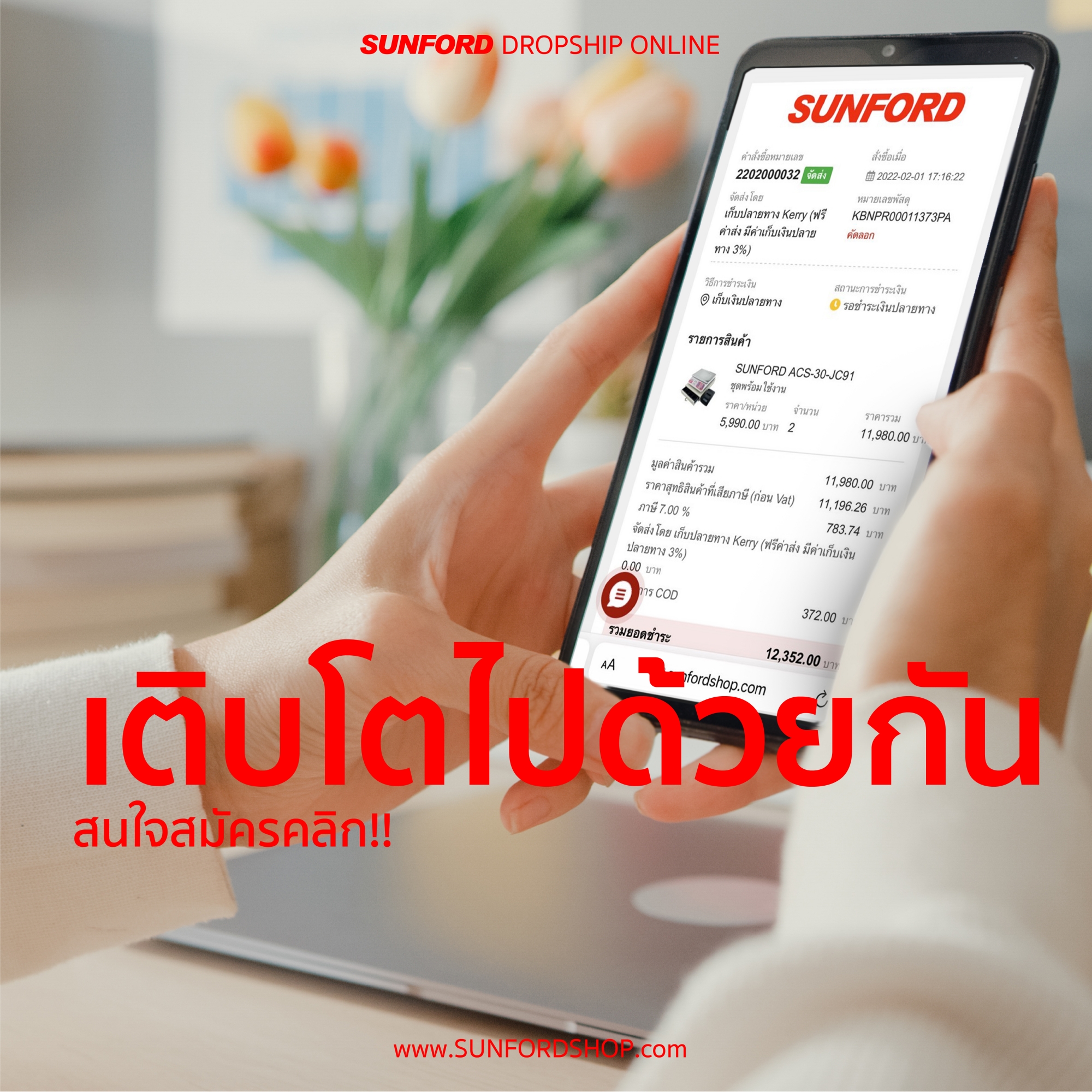 ฟรีค่าจัดส่งทั่วไทย ซันฟอร์ดจัดส่งให้ ไม่ต้องเสียเวลาแพ็คสินค้าส่ง