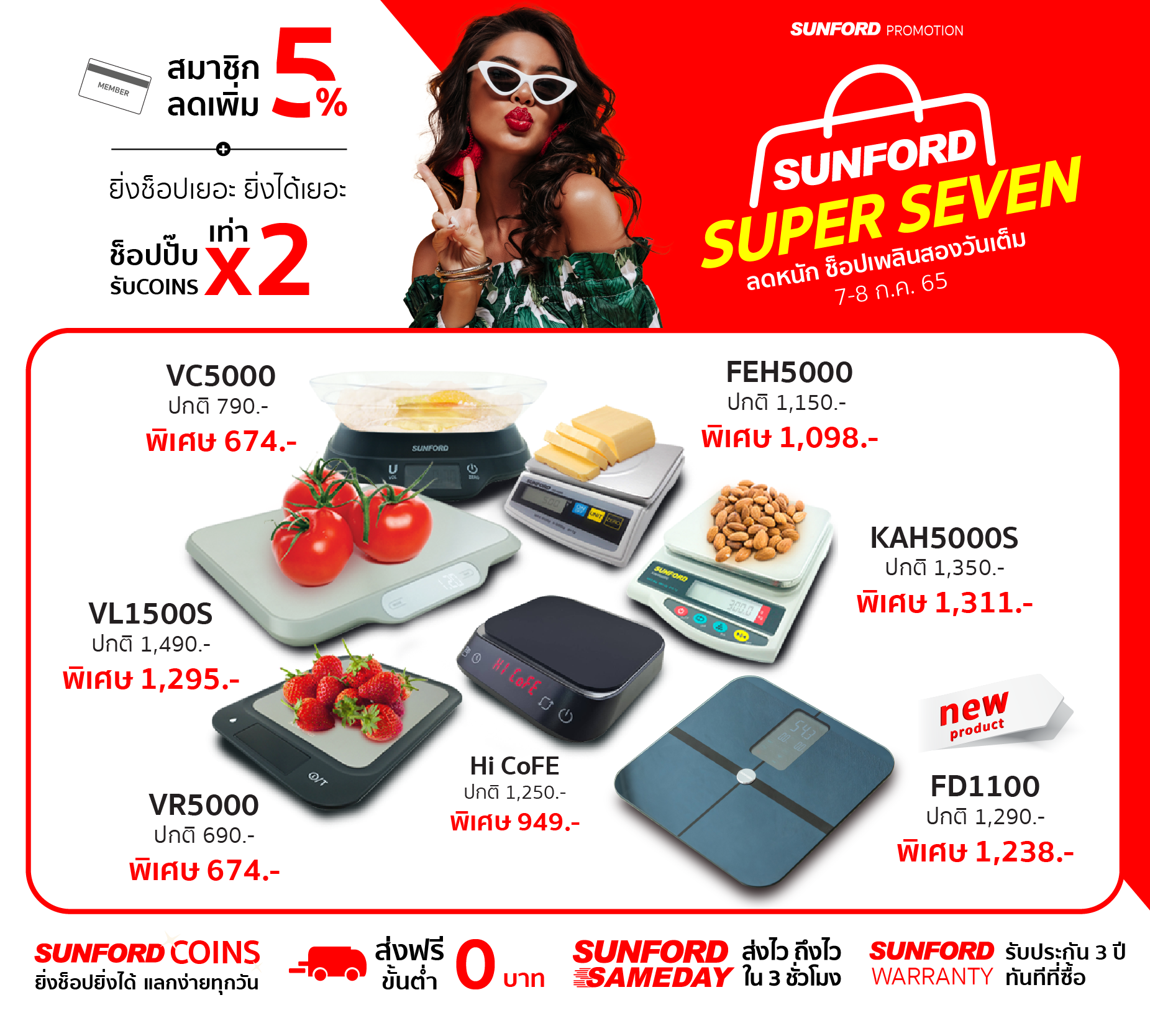 ซันฟอร์ด ชั่งง่ายขายดี ลดสูงสุด 30% และลดเพิ่มอีก 5%