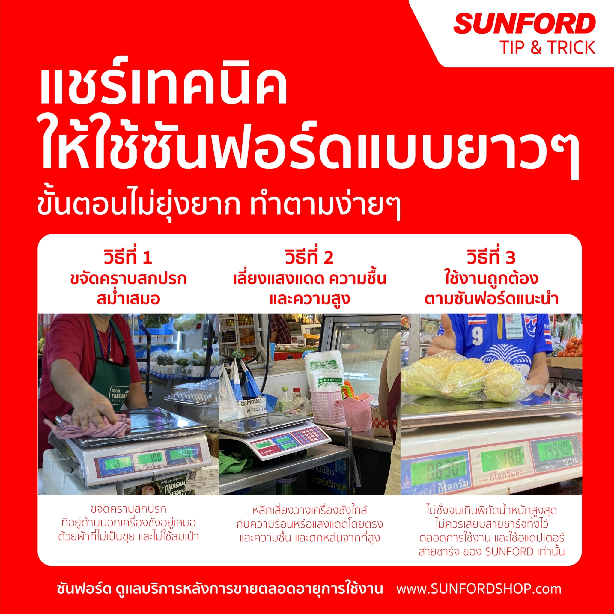 ซันฟอร์ดแจกวิธี ดูแลเครื่องชั่ง #SUNFORD ให้ใช้ได้แบบยาวๆ ขั้นตอนไม่ยุ่งยาก ทำตามง่ายๆ แล้วคุณจะได้เครื่องชั่งที่ใช้ใด้ยาวนานเกิน 3 ปี ก็รับเทคนิคนี้ไปเลยสิครับ